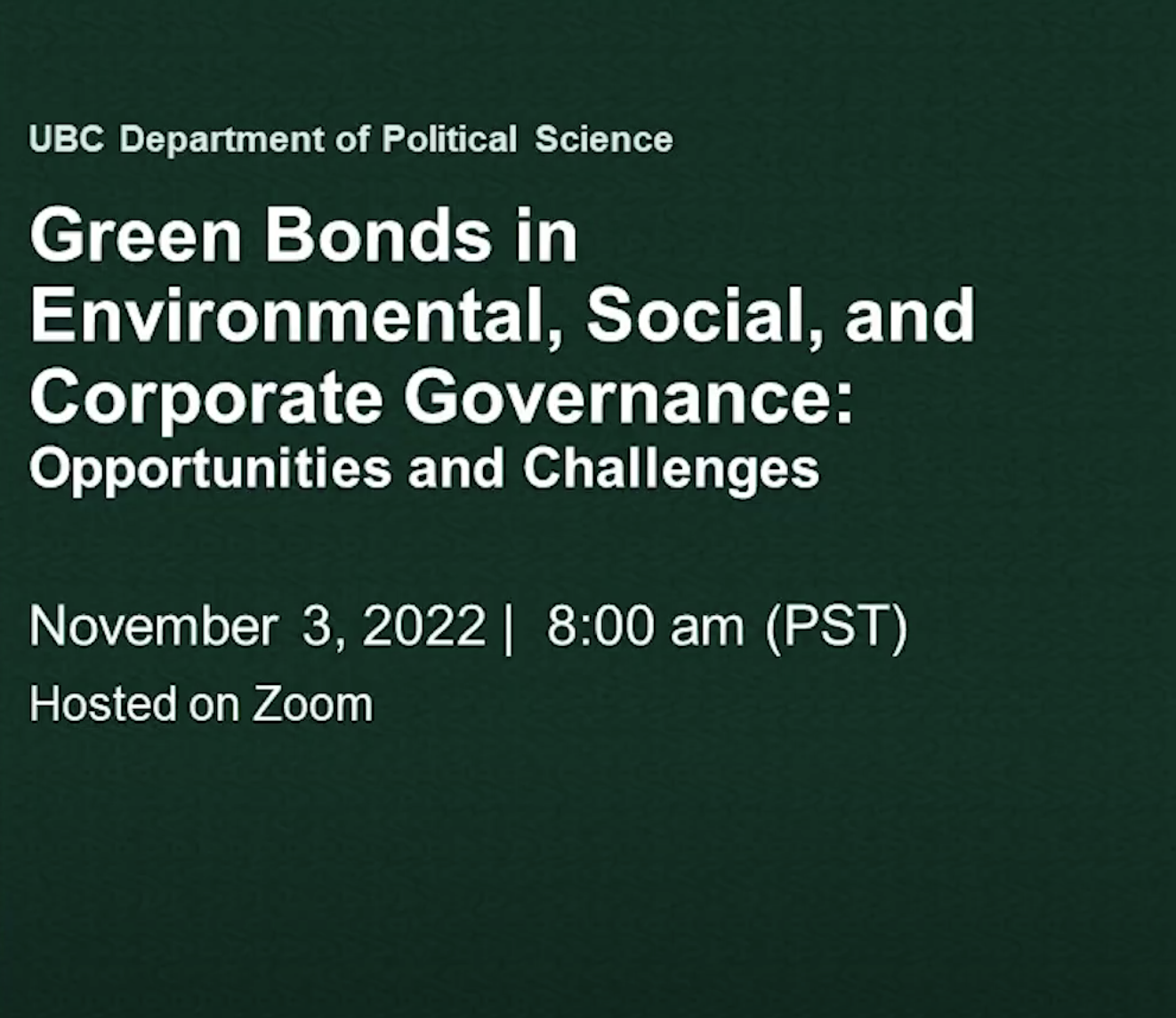 "Canadian and European Perspectives on Green Bonds and Environmental, Social and Corporate Governance“
